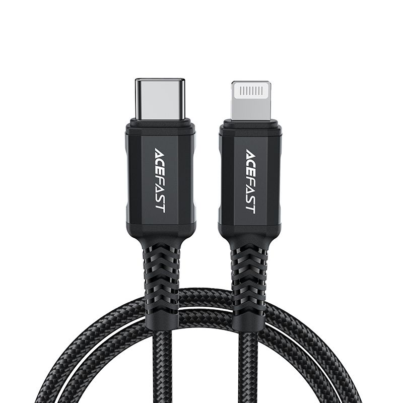Acefast USB Type C - Lightning cable for charging and data transfer. It is designed for Apple devices with a Lightning connector. It is 180 cm long and is adapted to work with a current of 30W and 3A. It is compatible with Power Delivery fast charging. It has an MFI (Maide For iPhone) certificate, so the phone will not display a message about a non-genuine accessory. The cable is braided along its entire length with nylon. The plugs have an aluminum housing. The cable ends are protected against damage at the most frequent bending points.