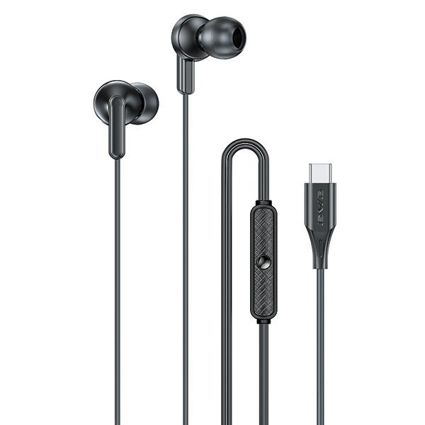 AWEI PC-25TB35 headphones in an elegant black color feature a modern design and ergonomic shape that fits perfectly in the ears.