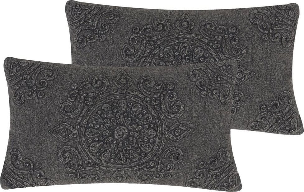 Beliani 2 baweniane poduszki dekoracyjne toczone 30 x 50 cm szare VELOOR!
