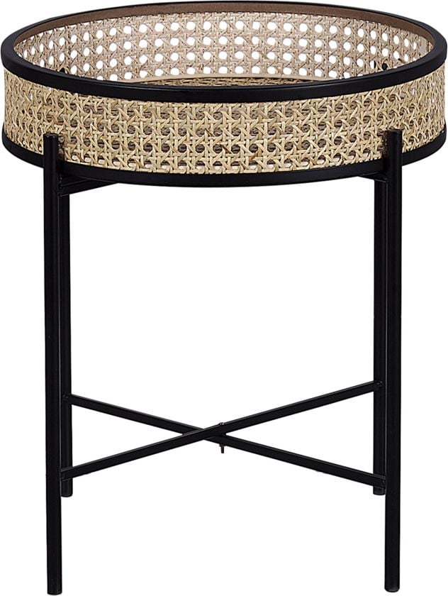 Beliani Stolik pomocniczy z tac czarny z jasnym rattanem VIENNA