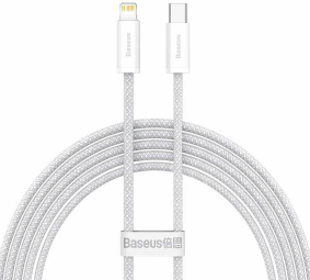 Brand Baseus Modelis CALD000002 Materiāls ABS + neilona pinums Jauda PD 20 W Moduļu pārsūtīšanas ātrums 480 Mb/s Garums 1 m Ieejas interfeiss USB-C Izejas interfeiss Lightning Krāsa balta