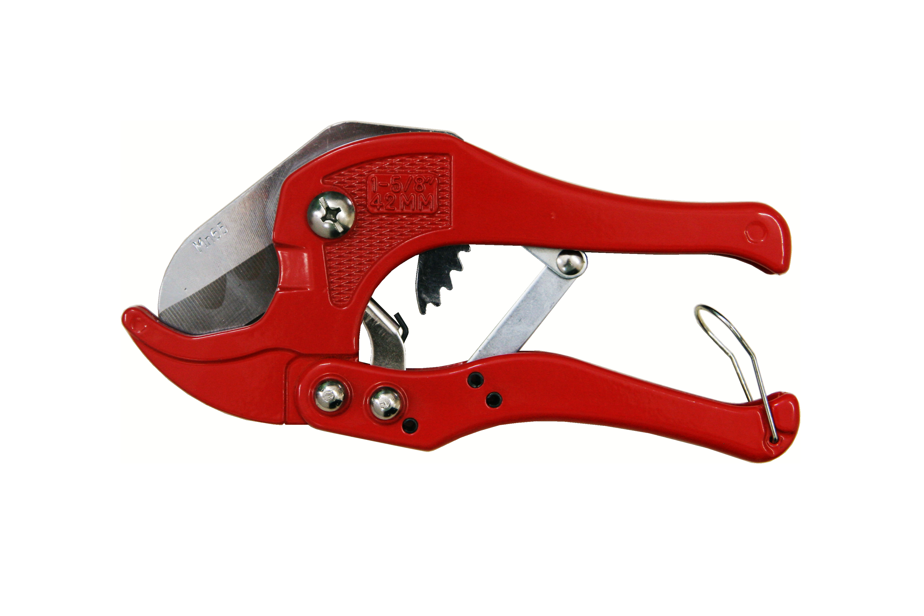 | Plastmasas cauruļu griezējs, piemēram, PVC, PE vai PP griešanai. Instruments ir viegls un ērts darbam. Korpuss ir izgatavots no cieta alumīnija, kas nodrošina griezēja vieglumu un izturību. Rūdītais un pulētais nerūsējošā tērauda asmens ir ārkārtīgi ass un precīzs. Plašās šķēru spīles ļauj labi novietot cauruli, pateicoties kurām elements tiek precīzi nogriezts taisnā leņķī. Iebūvētais sprūdrata mehānisms palielina naža spiedienu, kas efektīvi atvieglo griešanu. Deviņu pakāpju asmens pavirzīšana neļauj caurulei deformēties griešanas laikā. Var griezt vara kabeļus ar maksimālo diametru 12 mm. Maksimālais griežamās caurules diametrs 42 mm. Kopējais griezēja garums 190 mm. |