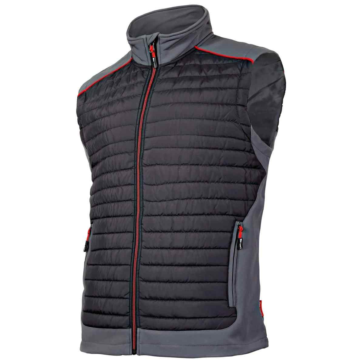 Darba veste. Ārējais materiāls - 100% poliesters, 70 g/m2 un soft-shell audums, 96% poliesters, 4% elastāns, 310 g/m2. Oderes materiāls - tafts, 50 g/m2 un flīss 160 g/m2. Ieliktņi izgatavoti no 3 slāņu soft-shell auduma ar TPU membrānu, ūdensizturīgi (8000 mm), elpojoši (3000 g/m2/24h), garantējot komfortu. 3 rāvējslēdzēja kabatas (2 ārpusē un 1 iekšpusē). Vestes apakšas platuma regulēšana ar speciālu aukliņu. CE kat.I, EN ISO 13688.
