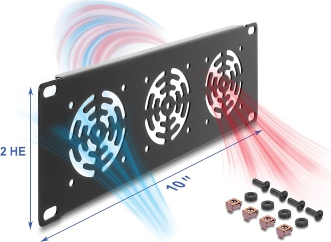 Delock 10″ 2U Rack Cover for 3 fans 60 x 60 mm dark grey