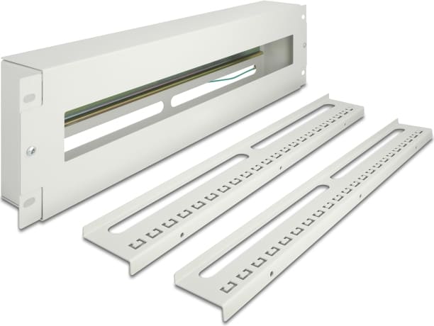 Delock 19″ Circuit-breaker with cover and DIN rail including 2 x cable strain relief rails 3U metal grey