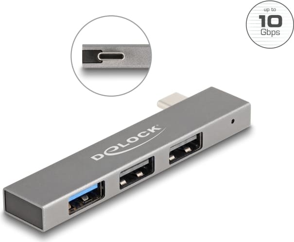 Delock 3 Port Slim USB Hub with USB Type-C™ to 1 x USB 10 Gbps USB Type-A + 2 x USB 2.0 Type-A