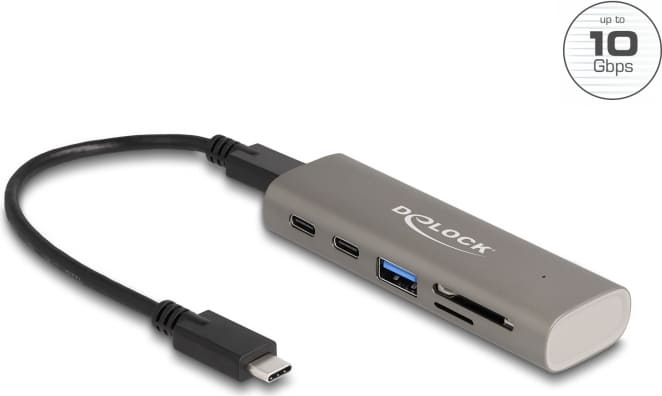 Delock 3 Port USB 10 Gbps Hub including SD and Micro SD Card Reader with USB Type-C™ connector