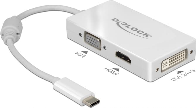 Delock Adapter USB Type-C™ male > VGA / HDMI / DVI female white