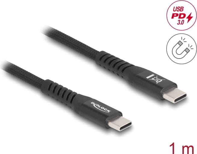 Delock USB 2.0 Cable USB Type-C™ male to male with magnetic textile jacket PD 3.0 60 W 1 m