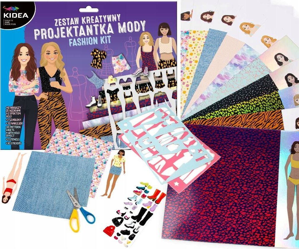 Derform Zestaw projektantka z szablonami 10 arkuszy Kidea