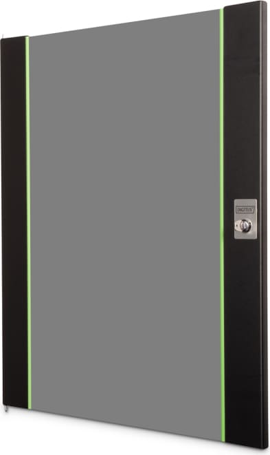 Replacement door for DIGITUS network cabinets for wall mounting of the Unique series. Safety glass with steel frame. Supplied with lock and key (type 9473).