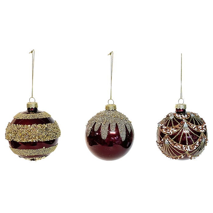 Eglīšu bumba ar dekoru d8cm, stikla, bordo