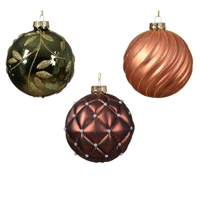 Egļu bumba ar ornamentu d10cm asorti