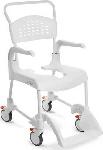 Etac Clean wózek toaletowo-prysznicowy zregulacj wysokoci siedziska (47,5 do 60cm)- 4 hamulce, kol. nieny biay