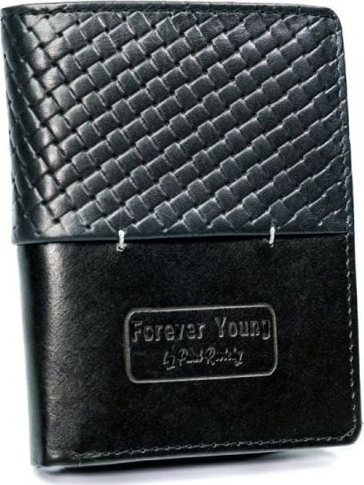 Forever Young Czarny portfel mski skórzany Forever Young z przeszyciem