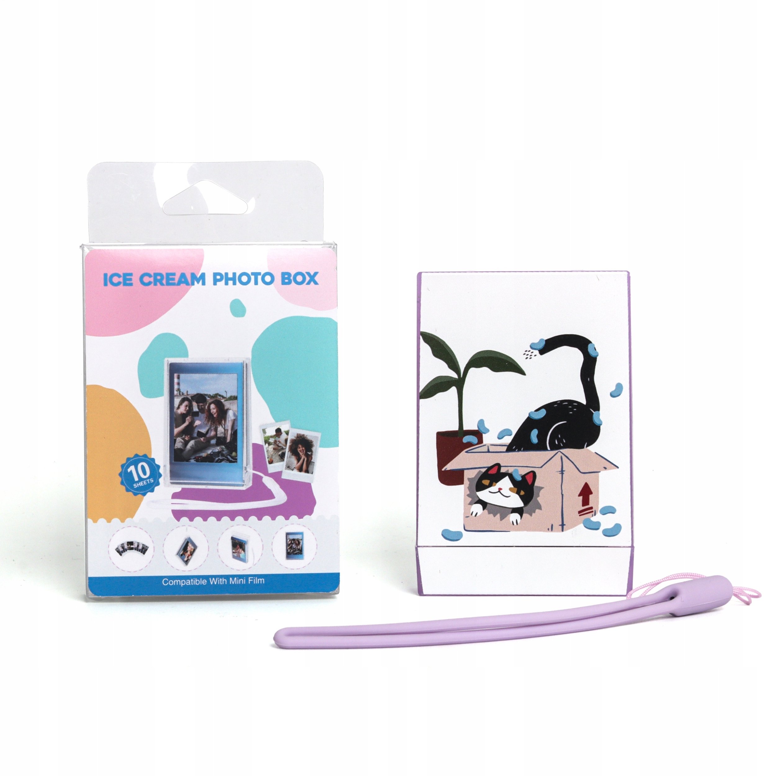 Futera Pudeko + Ramka Na Zdjcia Do Fuji Instax Mini Xiaomi Hp Kodak Zink / Przezroczysta / Fioletowa Z Brokatem / Kotek