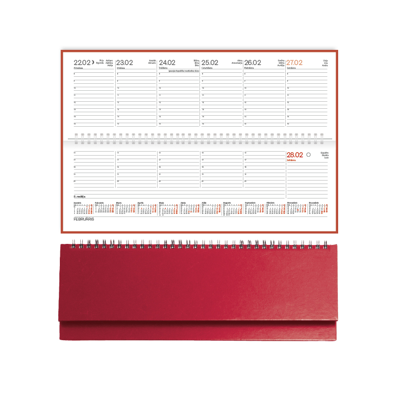 Galda plānotājs 2026.gadam EKO Credo,nedēļa, 300x100 mm, balacron, sarkans