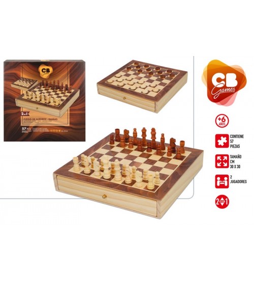 Набор CB Games «Шахматы и шашки 2 в 1» из дерева, доска 30x30x5,5 см классического дизайна.