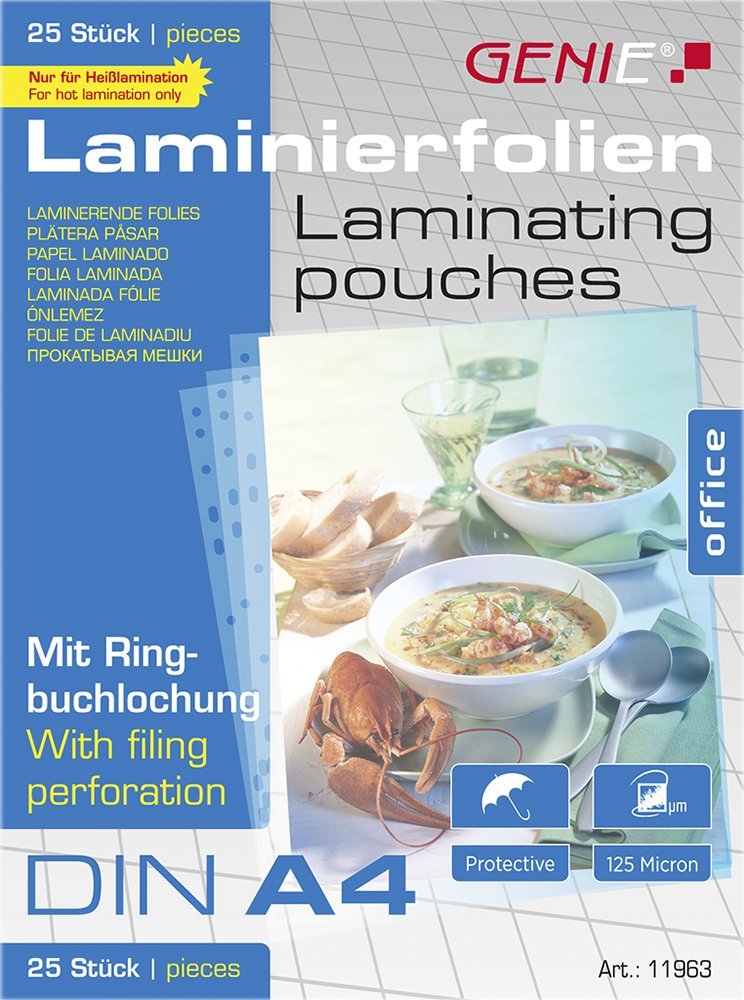 Genie GENIE torby do laminowania 25 A4 folia z dziurkami na ringi