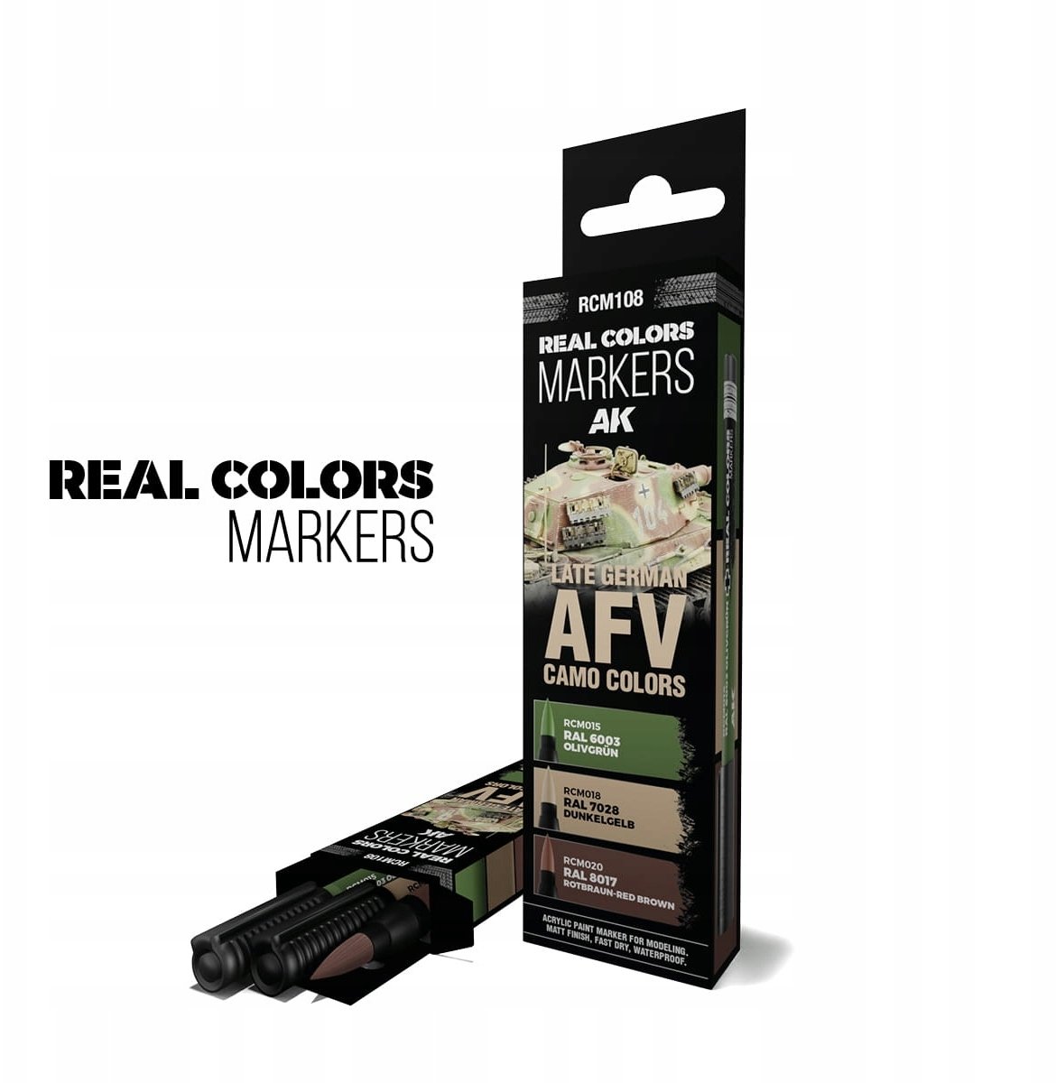 Gimmik AK Interactive: Real Colors Markers - RCM108 - Set - Late German AFV Camo Colors (3)