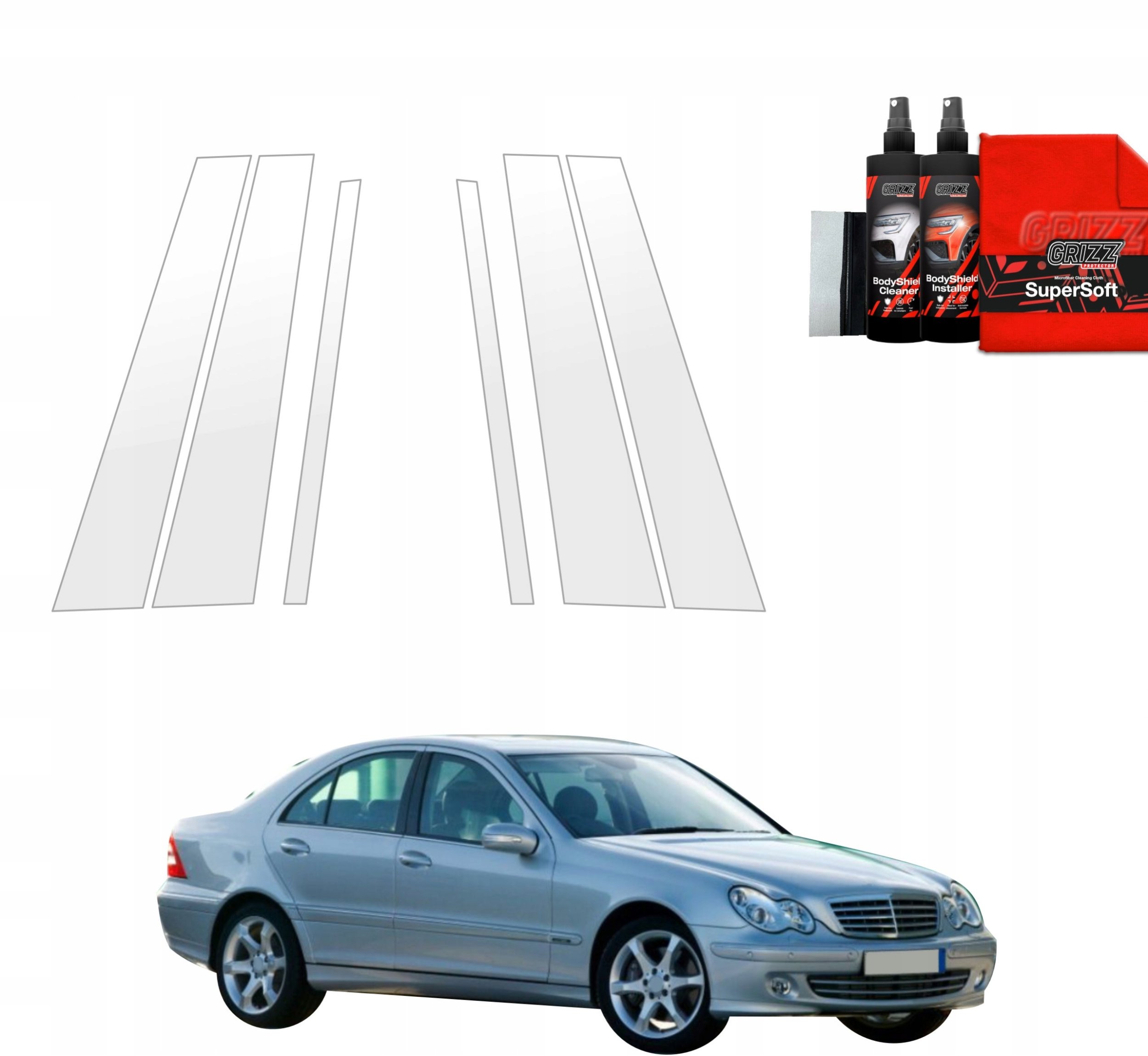 GrizzGlass Folia ochronna na supki GrizzGlass BodyShield do Mercedes Benz C Klasa W203 Sedan (2000-2007) [6w1]
