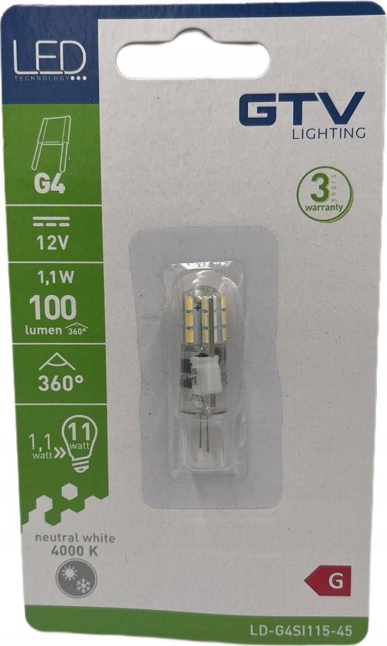 GTV arówka LED GTV LD-G9P5WE0-40 5W G9 SMD 2835 neutralna AC 230V kt wiecenia 360st. 400lm 4000K