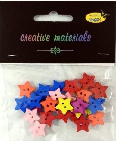 Guziki drewniane kolorowe gwiazdki 15mm 6g ok 30sz