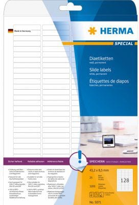 Herma Etykiety slajdów, biay, 43,2 x 8,5 mm, do wszystkich klatek slajdów, matowy papier, 25 arkuszy (5071)