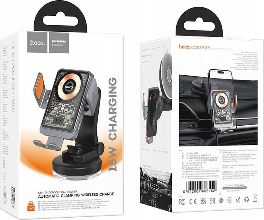 Hoco HOCO uchwyt samochodowy indukcyjny do szyby / deski 15W HW8 czarny