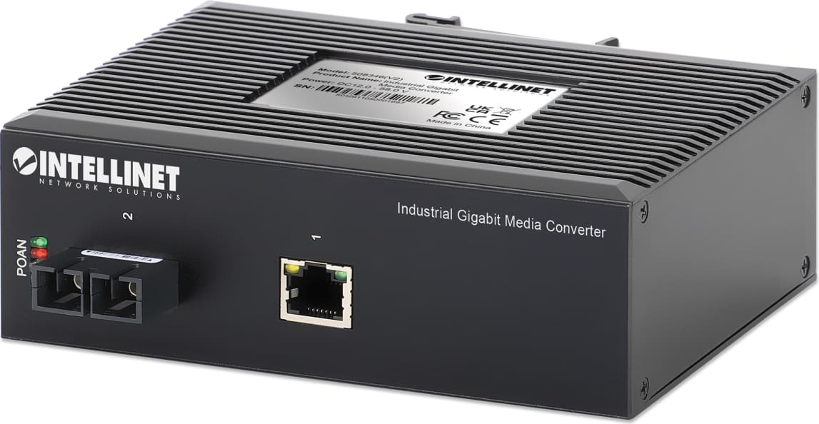Intellinet 508346. Maksimālais datu pārraides ātrums: 1000 Mbit/s, Konvertora ievades interfeiss: 10Base-T, 100Base-TX, 1000Base-TX, Konvertora izvades interfeiss: 1000Base-LX. Maksimālais pārskaitījums attālums: 20000 m, Viļņa garums: 1310 nm, Šķiedras režīma struktūra: Viens režīms. Produkta krāsa: Melns, Apvalka materiāls: Metāls, International Protection (IP) code: IP40. Optiskās šķiedras konektors: SC, Savienojamības tehnoloģija: Vadu. Izejas spriegums: 12 - 58 V