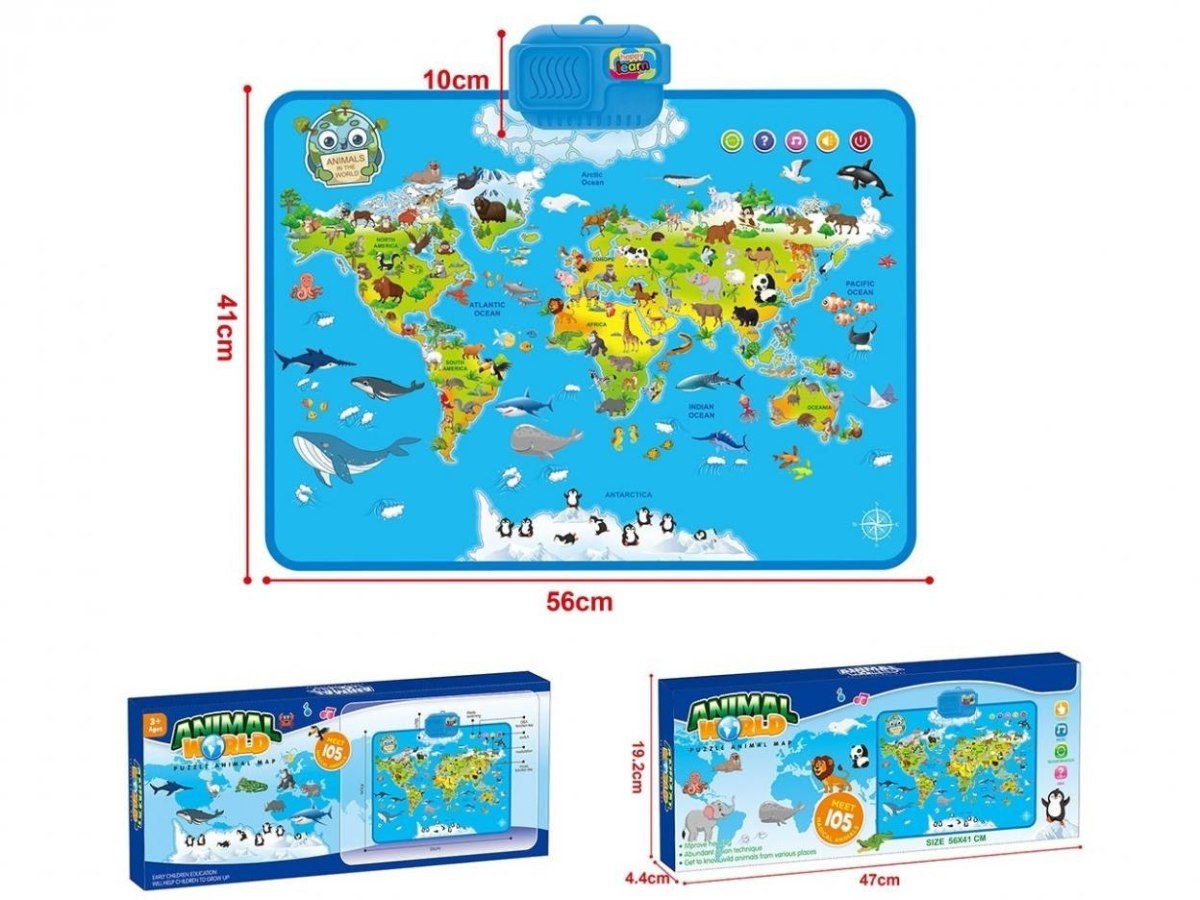 Interaktywna mapa zwierzt wiata 56x41cm