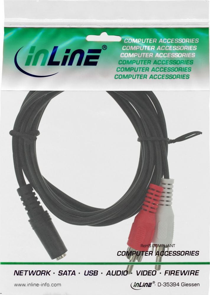 Kabel InLine Jack 3.5mm - RCA (Cinch) x2 1m czarny (89940A)