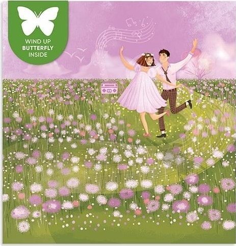 Karnet kwadrat z latajcym motylkiem lub Polana