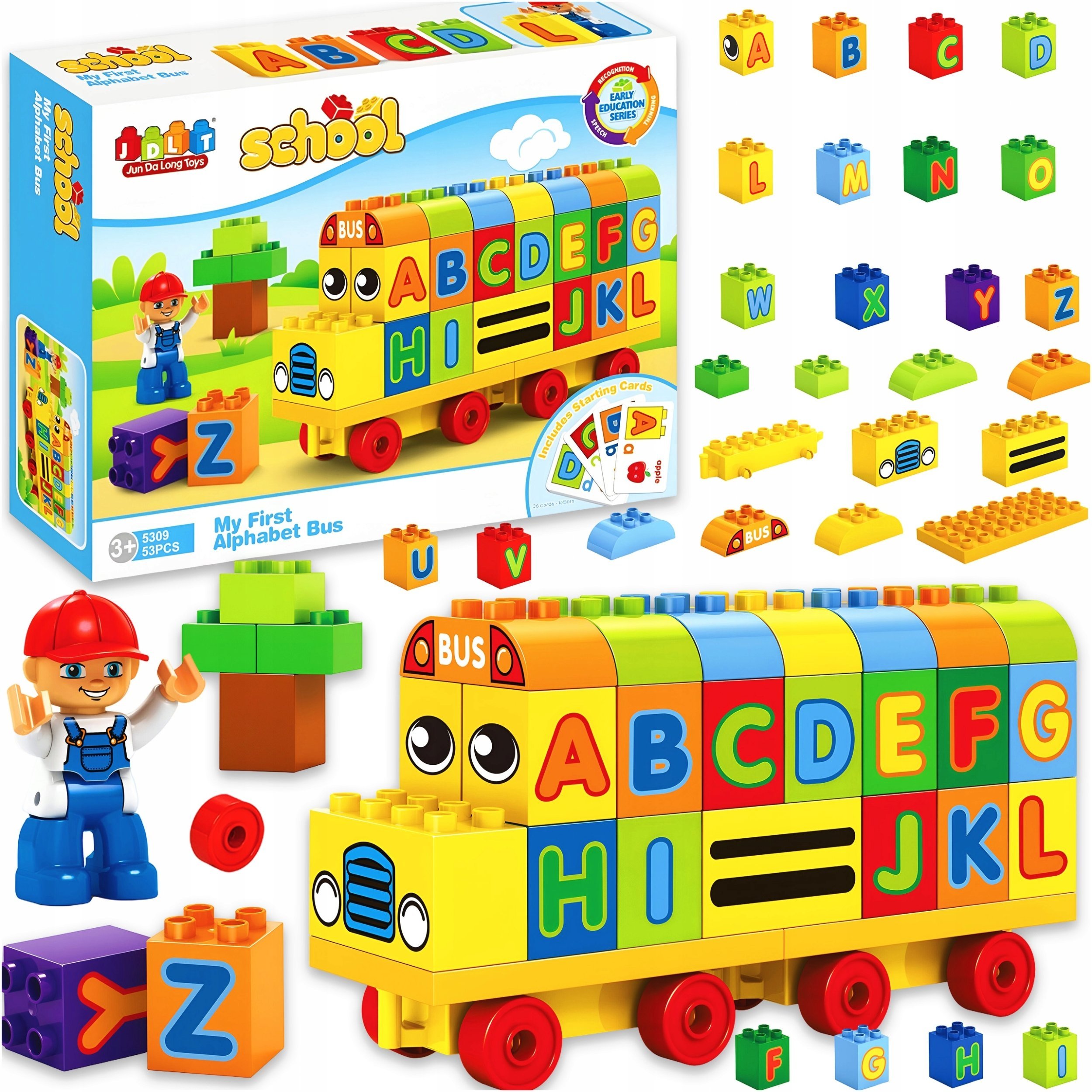 Klocki konstrukcyjne autobus edukacyjny literki 53 elementy