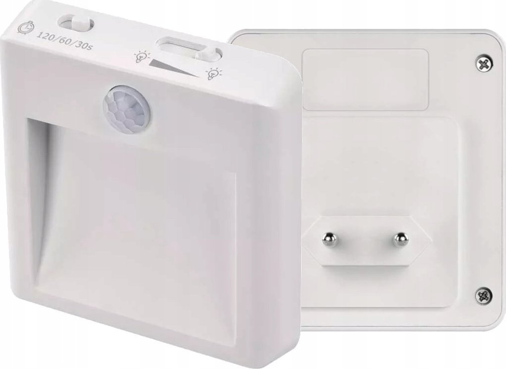 Lampka wtykowa do gniazdka Emos P3319 lampka do gniazdka wtykowa kwadrat z czujnikiem ruchu 1x0,5W LED 3000K biaa