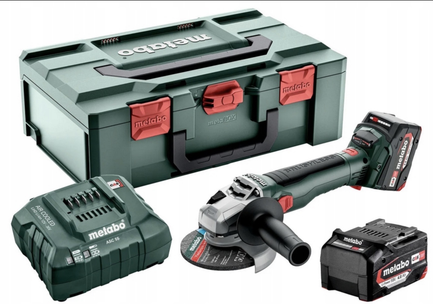 Leņķa slīpmašīna Metabo W 18 LT BL 11-125; 18 V; 2x4,0 Ah akum.