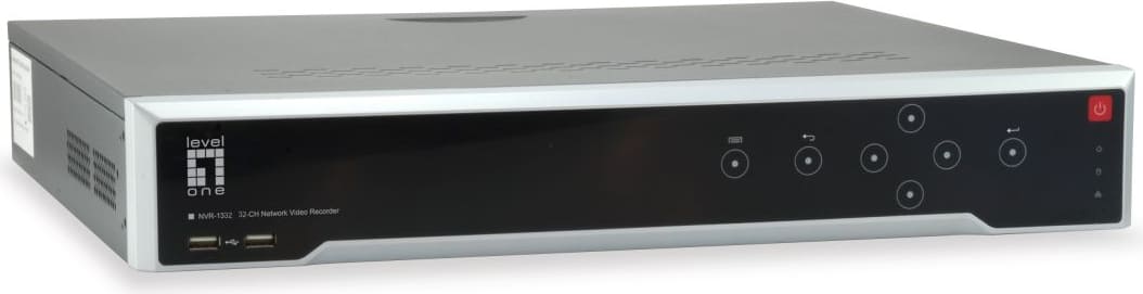 LevelOne NVR-1332. Video ievades kanāli: 32 kanāli, Maksimālā izšķirtspēja: 3840 x 2160 pikseļi, Atbalstītie video formāti: H.264, H.264+, H.265, MPEG4. Maksimālā uzglabāšanas ietilpība: 32 TB, Cietā diska interfeiss: SATA, SATA II, SATA III. LED indikatori: Jauda, Produkta krāsa: Melns, Sudrabs. Atbalstītās mobilās operētājsistēmas: Android, iOS. Platums: 390 mm, Dziļums: 70 mm, Augstums: 445 mm