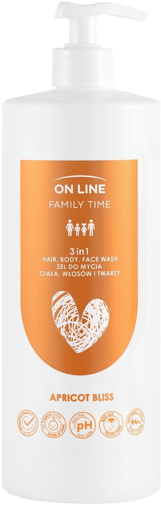 ON LINE Family Time el do mycia ciaa ,wosów i twarzy 3w1 - Apricot Bliss 850 ml
