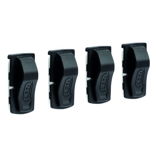 | Universāli līmējamie stiprinājuma klipši (4 gab.), ar kuriem Petzl pieres lukturi piestiprināt uz jebkura veida ķiveres bez stiprinājumiem pieres lukturim (pārbaudiet saderību ar ražotāju).