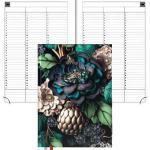 • Ietver saturu, piezīmju lapas, plānotāja lapas (6 mēneši atvērumā un 1 mēnesis atvērumā), kalendāru