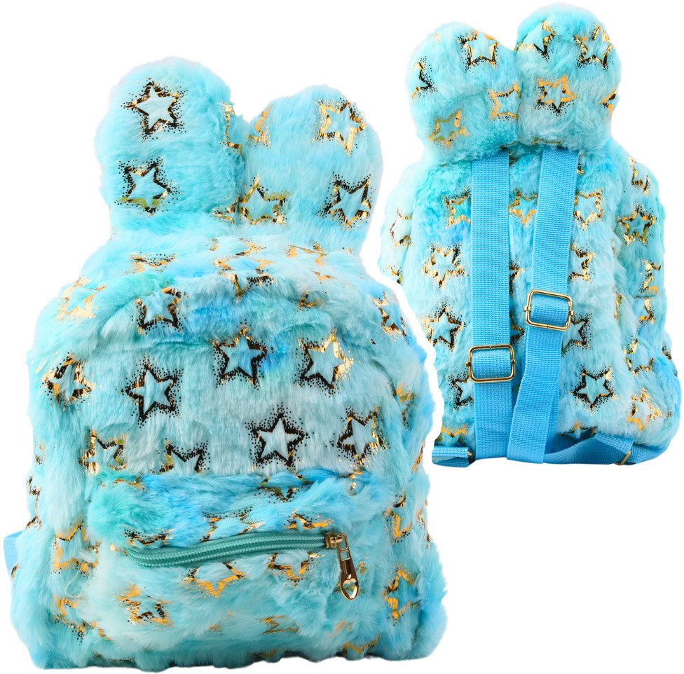 Pluszowy Plecak Uszy Zote Gwiazdki Dziecicy Niebieski
