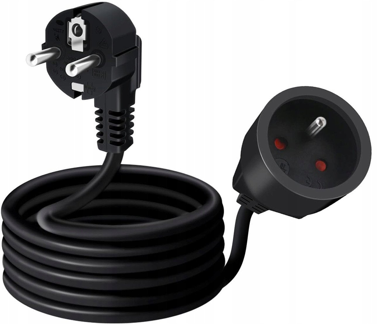 Przeduacz sieciowy Wtyk - Gniazdo 5m czarny