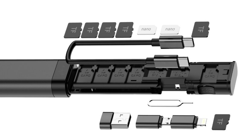 9 адаптеров в одном корпусе — включает USB‑C, USB‑A, Lightning, micro USB