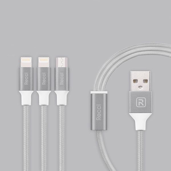 Recci Universal Delicate RCS-H120 3 in 1 Micro USB + 2 x Lightning Fast Charging 1,2 m Grey
