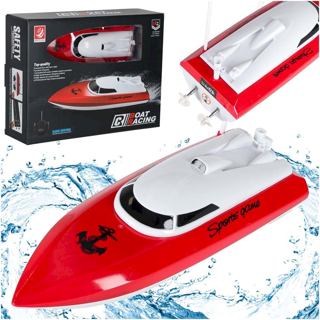 RoGer Remote Controlled Racing Boat 4CH mini CP802 Red is a waterproof remote control toy boat designed for fun water play and racing adventures. The boat features a sturdy plastic hull, a rechargeable Ni‑Cd 3.6 V 500 mAh battery and a 27 MHz remote controller that enables steady control up to around 20 m distance and speeds of up to 20 km/h. This model is easy to steer, highly maneuverable, and ideal for supervised play by children aged 3+ as well as enjoyable for older hobbyists. The set includes the boat, controller, battery, charger and antenna. The boat measures approximately 24×8×7.5 cm, making it compact yet impressive for water play. |