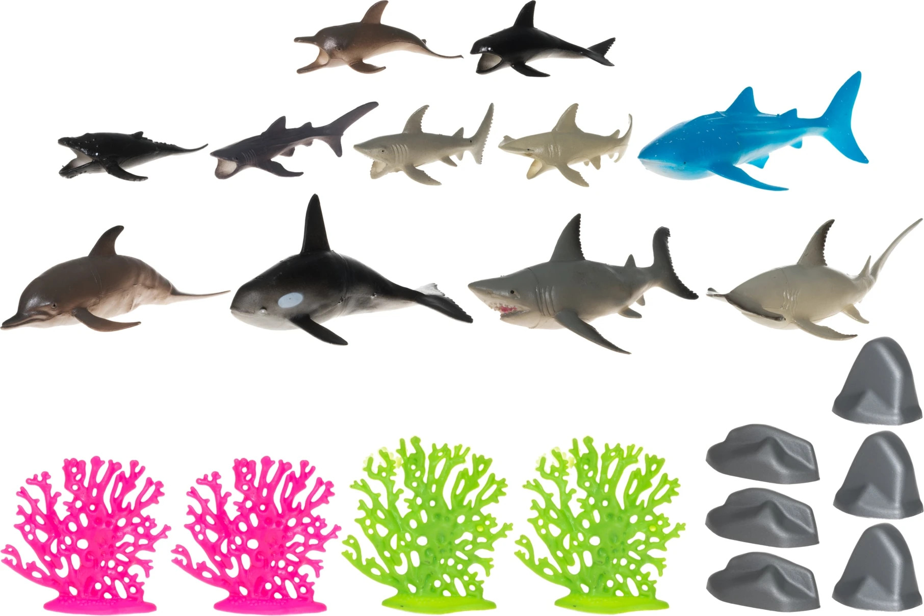 Īpaši detalizēts okeāna tematikas rotaļu komplekts. Šajā rotaļu komplektā ir 11 jūras dzīvnieki, piemēram, delfīni, haizivis un vaļi, un citi aksesuāri.