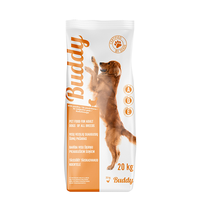 Sausā barība pieaugušiem suņiem Buddy ar mājputnu gaļu, 20kg