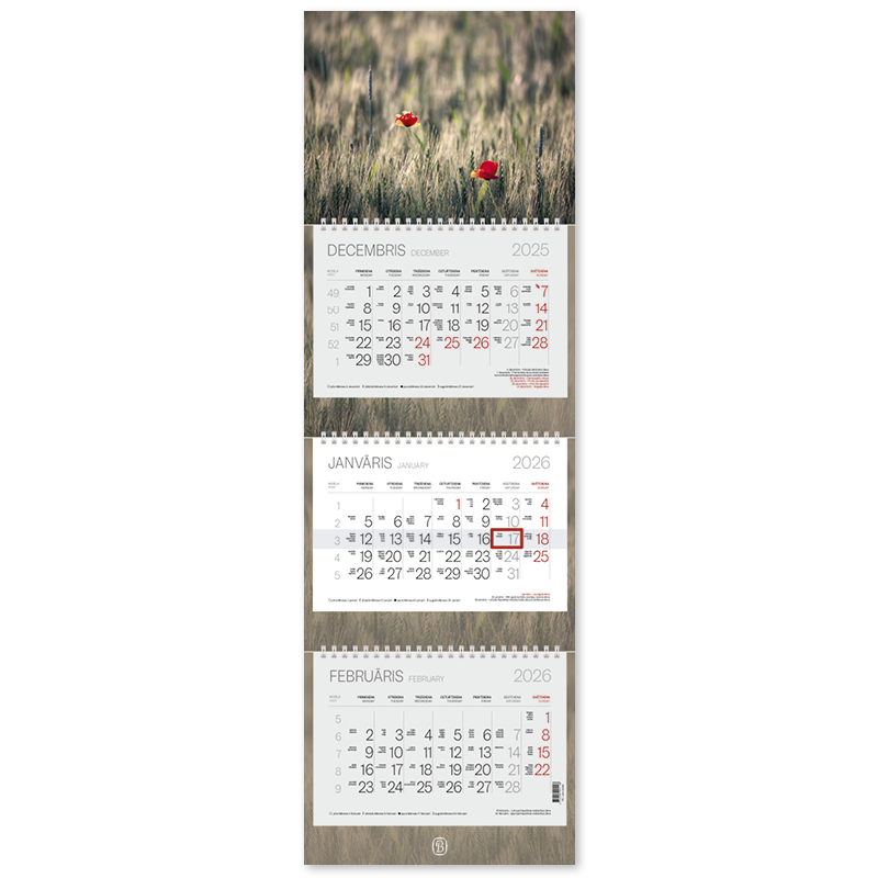 Sienas kalendārs-plānotājs 2026.gadam EKO TRIO Plus, trīsdaļīgs, 305x960 m