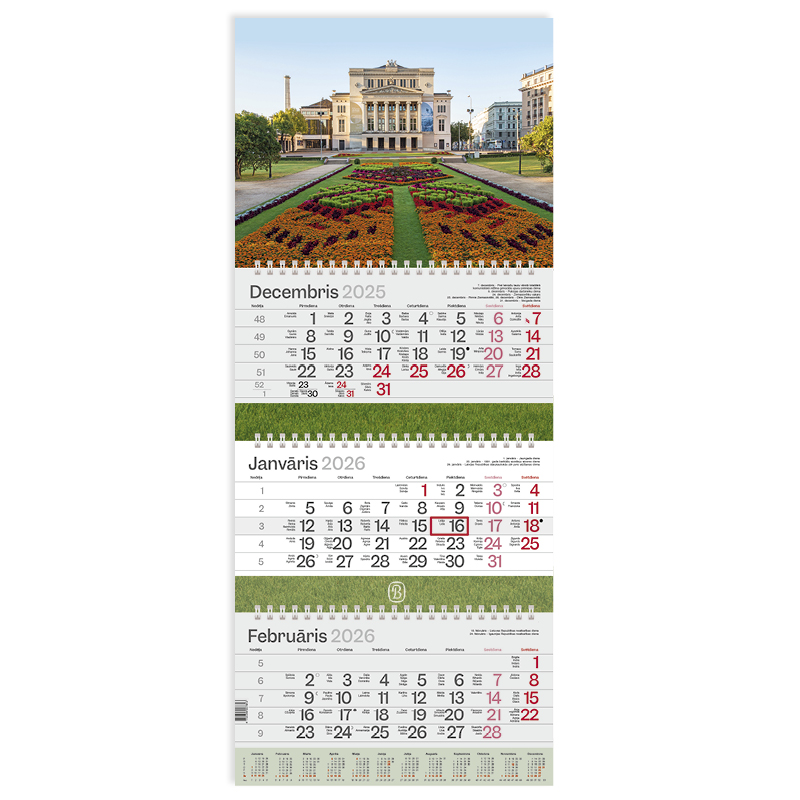 Sienas kalendārs-plānotājs 2026.gads EKO Riga trīsdaļīgs, 305x735 mm