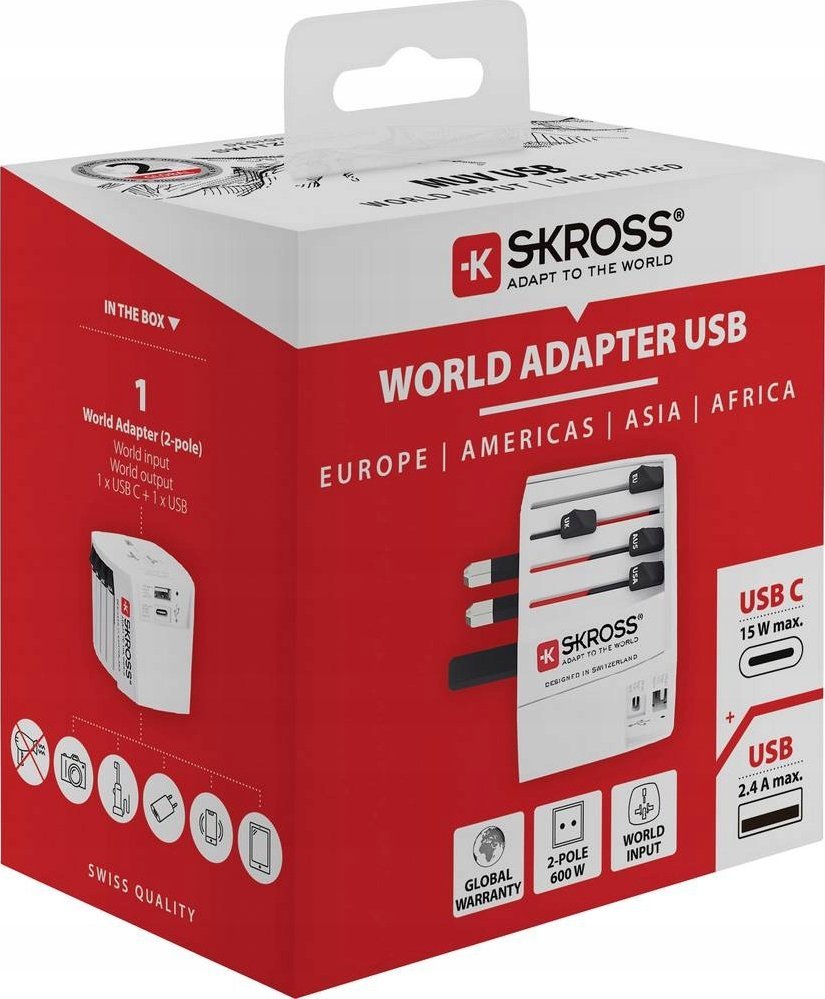 Skross MUV USB AC World Travel Adapter with USB, worldwide